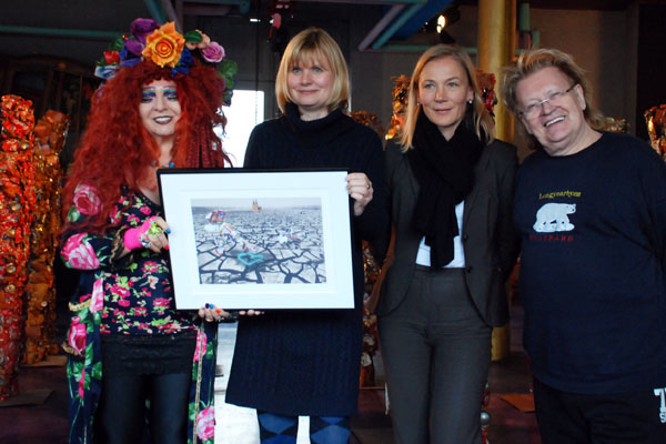 Diese Zusammenarbeit trägt nun weitere Früchte. Der Künstler ließ sich von dem Ereignis auf dem Roncalli-Platz zu einer Collage inspirieren, die nun als Graphik vorliegt. „Wir wollten die Aktion auf dem Roncalliplatz nicht als reine Kunstaktion stehen lassen und auch Obdachlose unterstützen“, sagte Kathrin Möller, Vorstandsmitglied der GAG. Der Erlös aus dem Verkauf kommt nämlich zu 100% der neue Initiative „kunst/hilft/geben“ zu Gute. Sie fördert Projekte für Arme und Wohnungslose in Köln, z.B. mit Spenden an die Kölner Tafel oder einem geplanten Wohnheim. Unterstützt wird der Verein dabei unter anderem von Bürgermeisterin Elfi-Scho Antwerpes, der Kunstberaterin Jeane Freifrau von Oppenheim oder dem Schriftsteller Günter Wallraff.