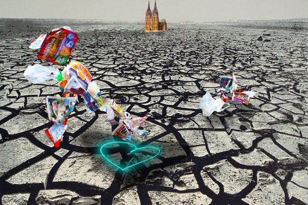 „Wir produzieren Müll, sind aus Müll geboren und werden wieder zu Müll", so lautet eine Grundüberzeugung des Aktionskünstlers HA Schult. Der Wahlkölner wandelt die Hinterlassenschaften unseres Konsums in Kunst um. Seine berühmten TrashPeople, Skulpturen erstanden aus rheinischen Mülldeponien, machen diesen Gedanken sinnlich erfahrbar. Mit ihnen reist er seit 1996 um den Globus (zum Porträt).
